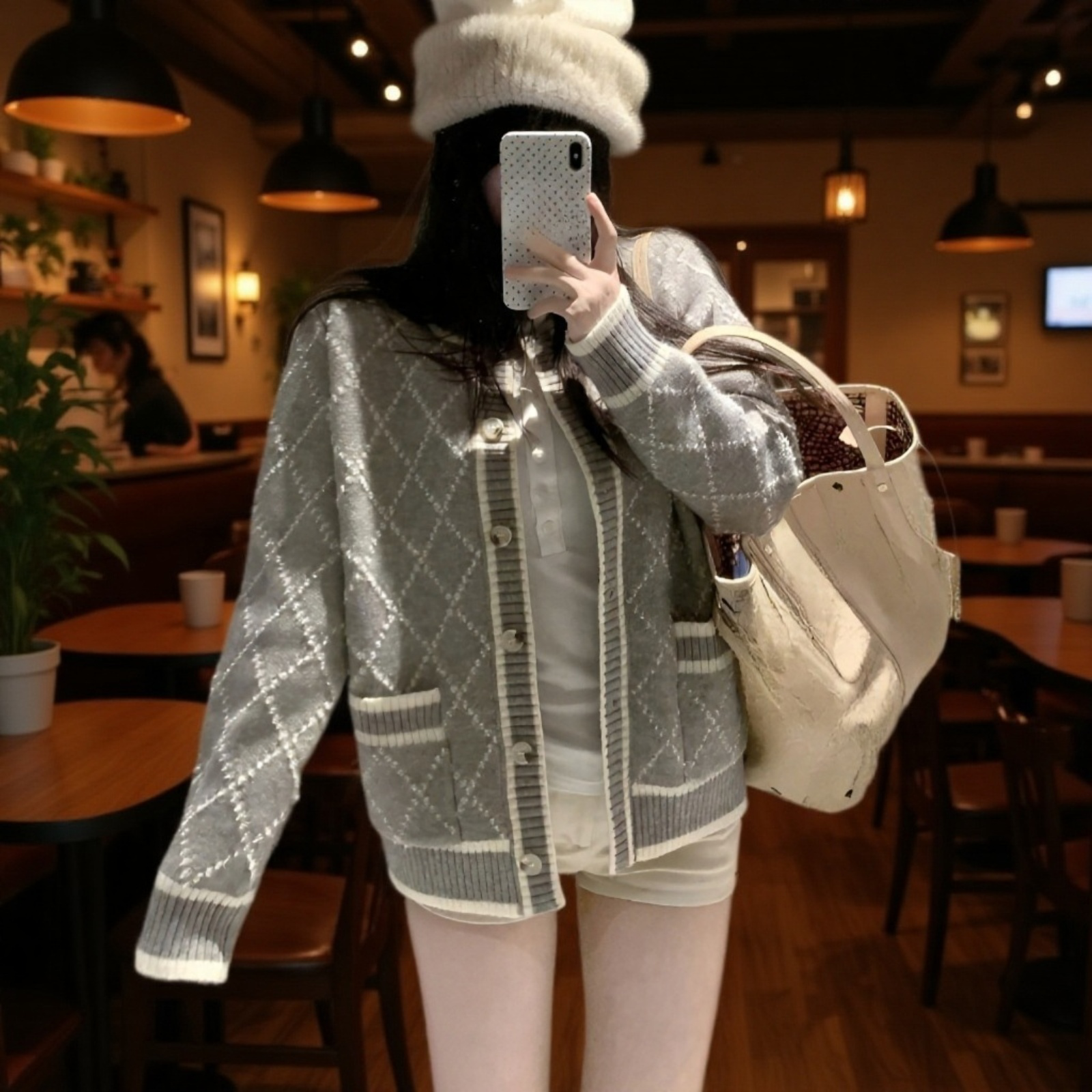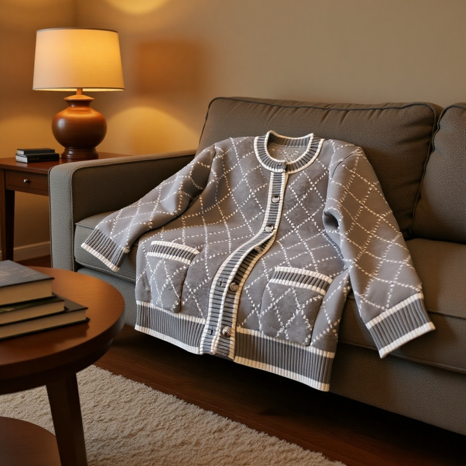 デザイン感のある女性用ニットカーディガン、ゆったりとした小衆スタイル